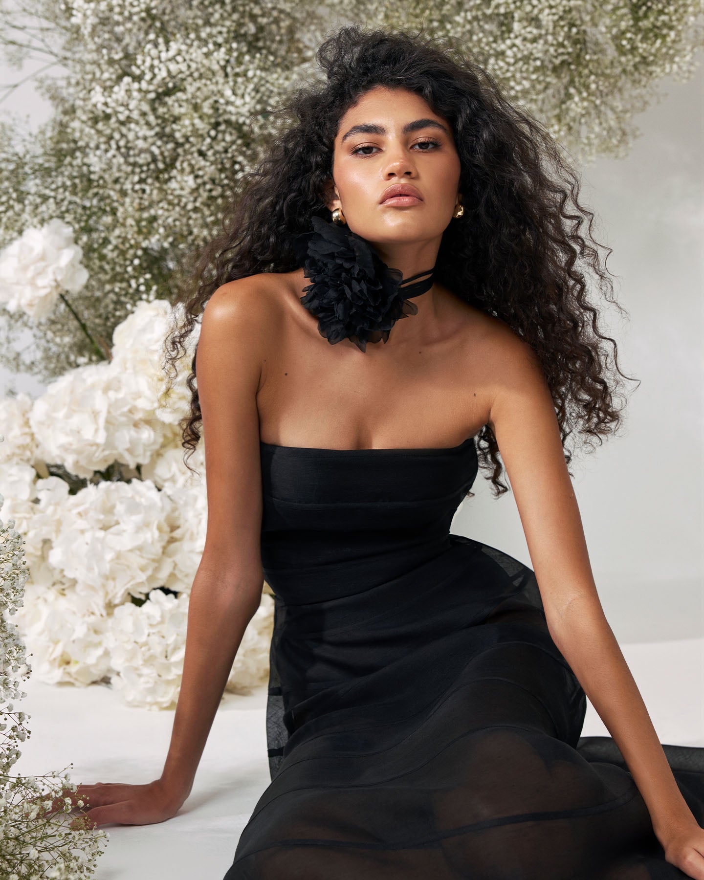 The black peony flower choker is a versatile accessory that can be worn around the neck, on the wrist, in the hair, as a belt, or as an embellishment for a bag. Each flower is meticulously handcrafted from natural silk. It is perfect for those who appreciate individuality in every detail.