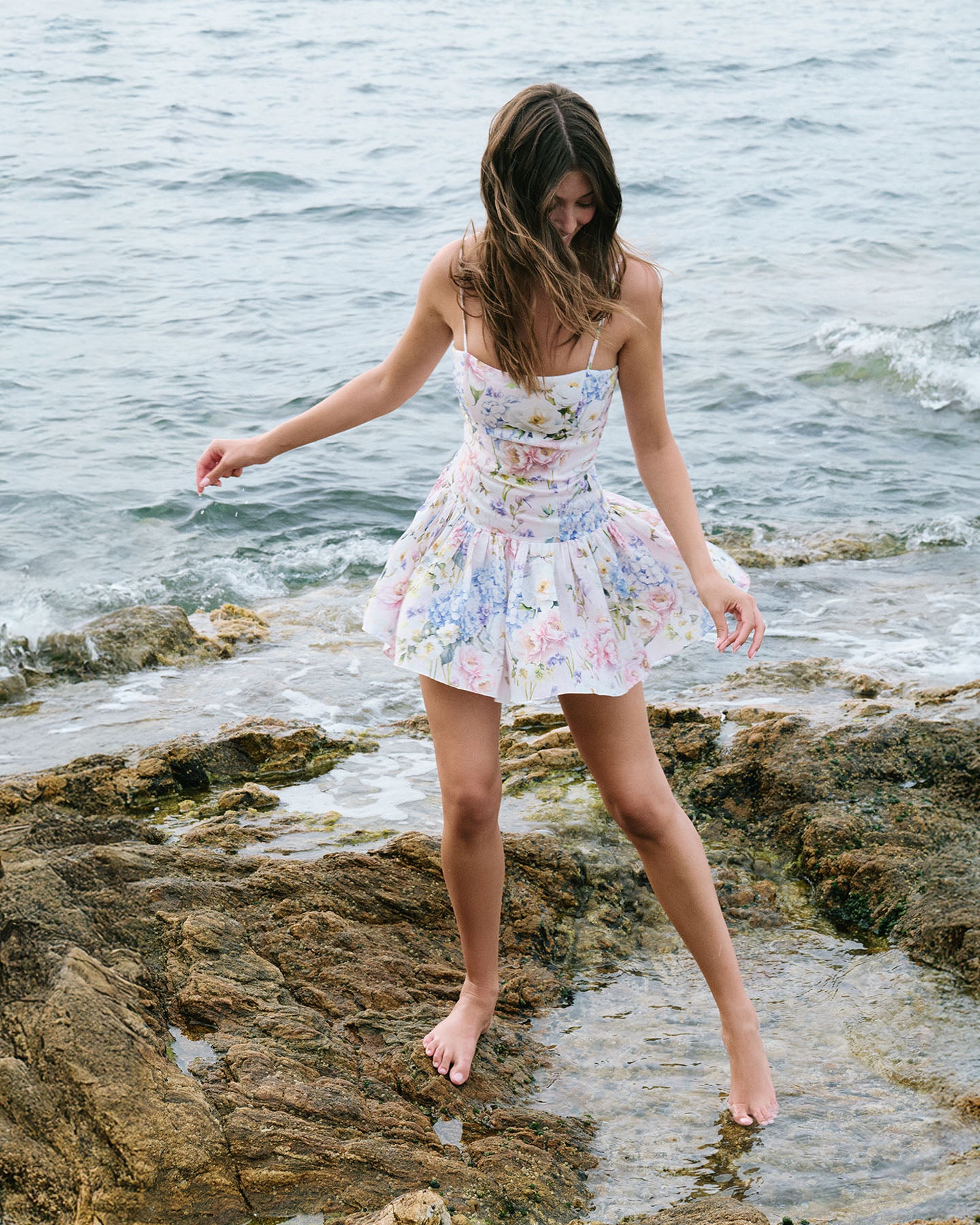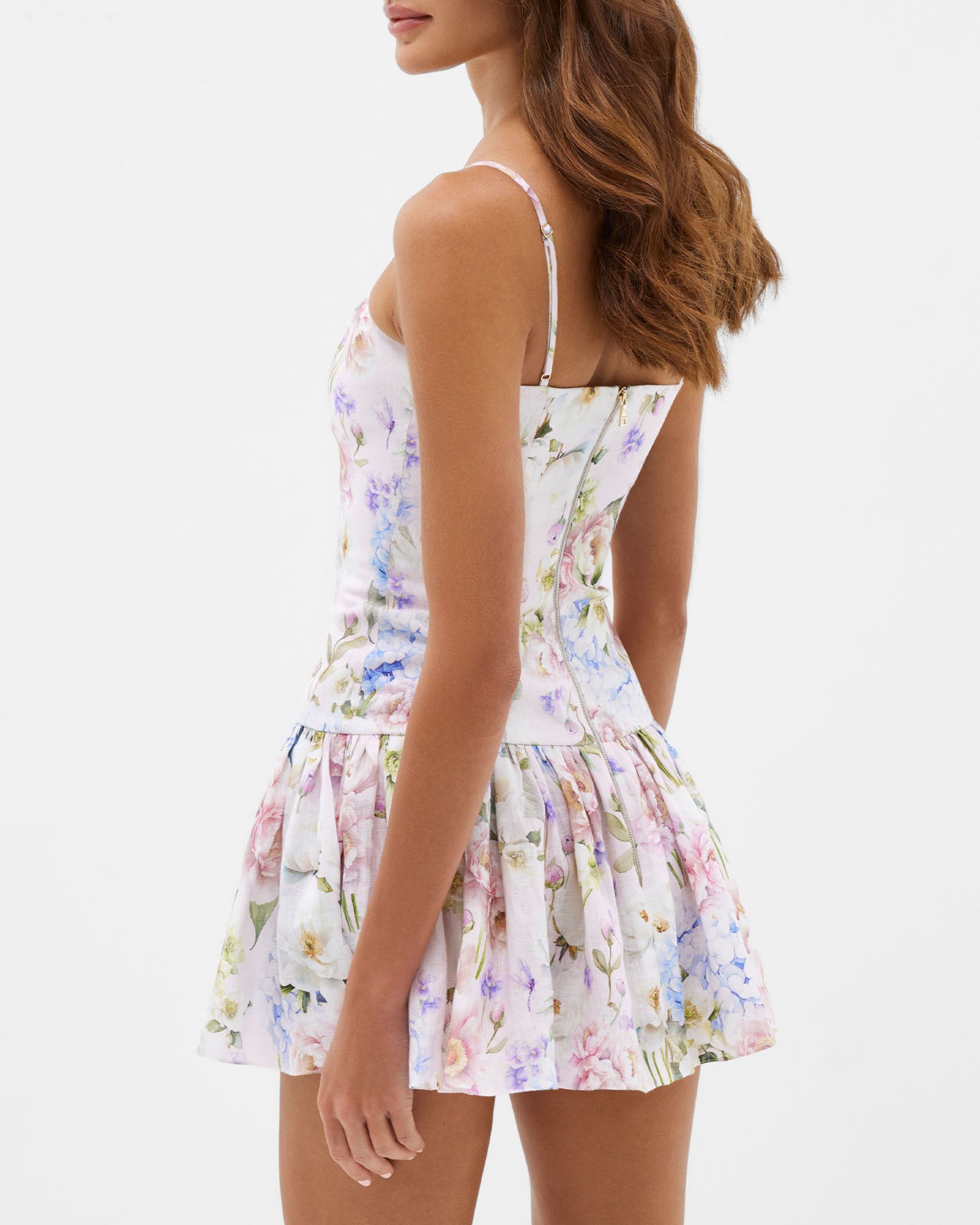 This flirty mini dress, crafted from premium linen, exudes lightness and romantic charm.