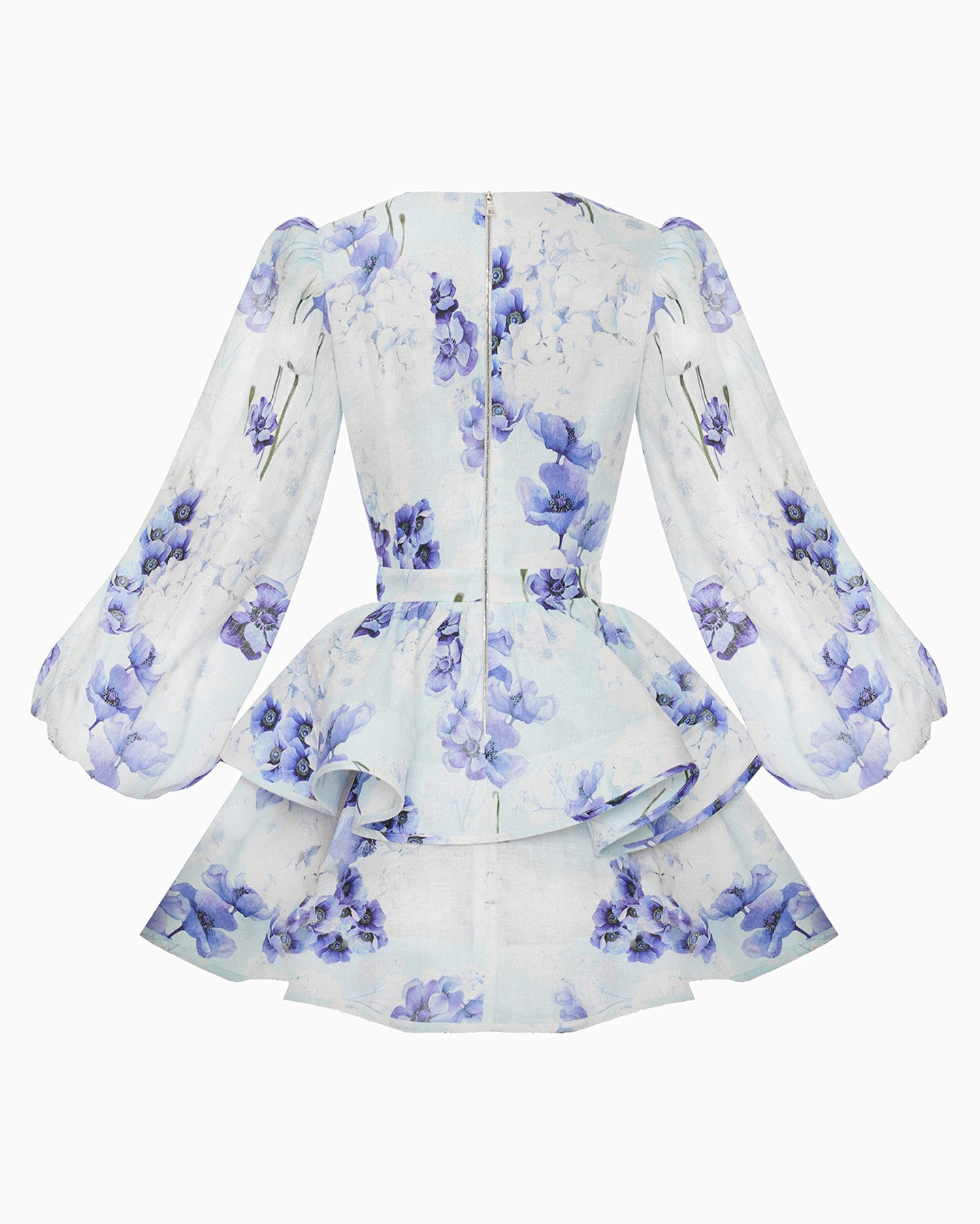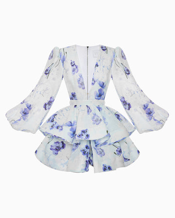 The luxurious, airy ANEMONE dress from the new Folie en Bleu collection is a standout example of YVON's signature dress, symbolizing unwavering quality and refined style. The voluminous double-layered skirt with crinoline and bell sleeves add an incredible lightness and airiness to the look. The vibrant print featuring rare blue poppy flowers creates an atmosphere of dreams and fantasies. The deep yet elegant neckline accentuates femininity, while the sophisticated shape of the dress will captivate any connoisseur of beauty.