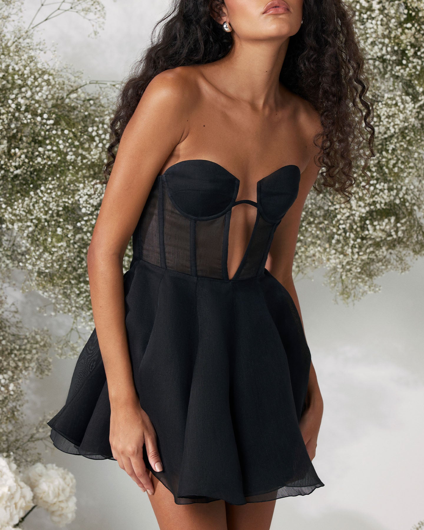 PIVOINE is the embodiment of refined elegance and modern femininity. The deep black color, mini length, and uniquely designed corset create a look that highlights your individuality and confidence. The weightless texture of linen-silk offers a sensation of lightness, making this dress the perfect choice for special moments and stylish outings.