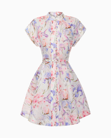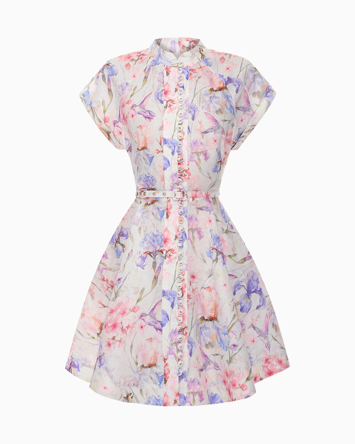 The essence of Italian charm. Crafted from 100% premium linen, the ALPINIA dress strikes a perfect balance between structure and ease. Its mini length, crinoline-lined skirt, and refined print lend the look a distinct sense of elegance and allure. The waist belt highlights your silhouette, adding a touch of sophistication. For a more polished, elegant appearance, button it all the way up. Prefer a softer, more romantic feel? Simply leave the top buttons undone to reveal a graceful neckline.
