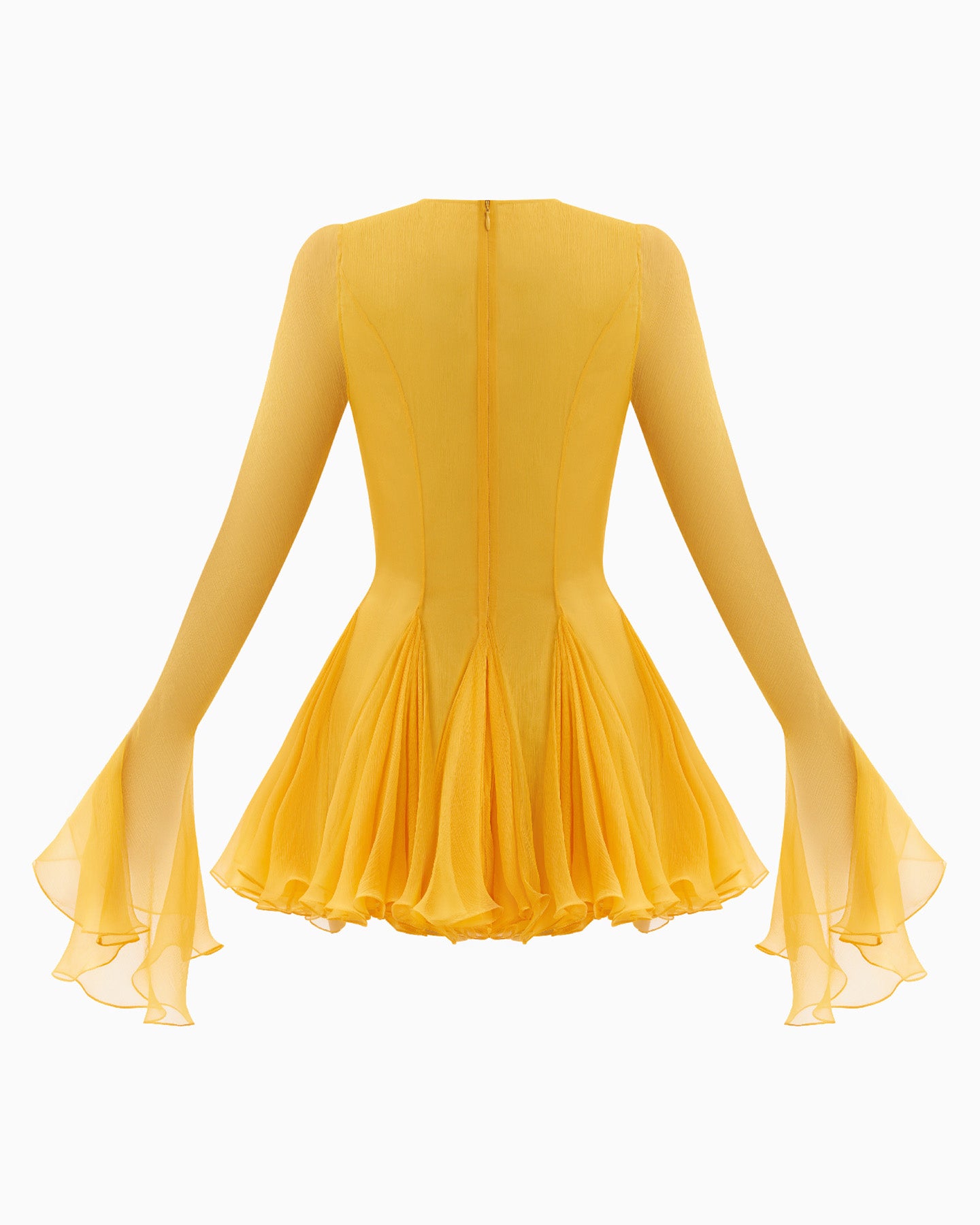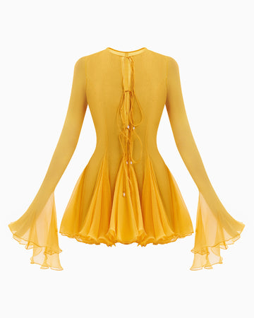 Moroccan heat, fiery spices, and endless deserts-all captured in a weightless dress in vibrant yellow tones. Featuring flowing long sleeves, a double-layered skirt of comfortable length, and delicate tie details at the neckline, it’s the perfect choice for an evening out in the city or a sunset stroll in warm weather. The silk fabric ensures you feel both comfortable and effortlessly chic, no matter the time of day.