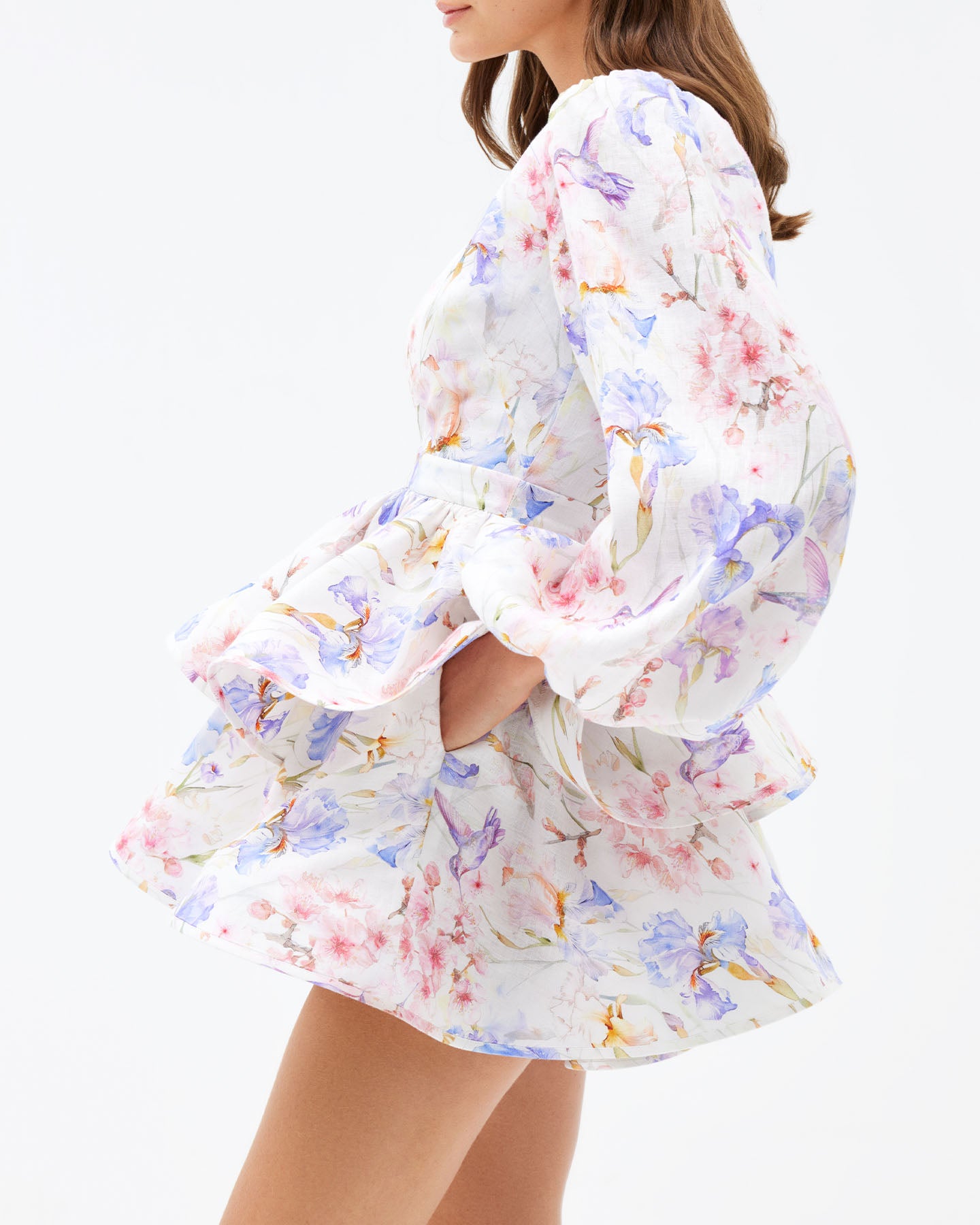 This luxurious best-selling YVON dress is crafted from premium linen in a one-of-a-kind floral print. A voluminous double-layer skirt with crinoline and airy sleeves add softness and romance to the look. A deep yet elegant neckline, fastened with a subtle hook, emphasizes femininity, while the refined silhouette will enchant even the most discerning eye. Prepare for compliments — this dress won’t let you go unnoticed.