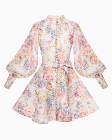 JASMINE is the true embodiment of Italian charm. Made from 100% premium linen, the JASMINE dress combines structure and lightness. The mini length, exclusive print, and golden dragonfly buttons give this dress a unique charm and elegance. The belt accentuates the waist, enhancing your silhouette and adding a touch of sophistication. Buttoned, the dress creates a sleek and elegant look, while unbuttoned, it reveals an exquisite neckline, adding romance and mystery.