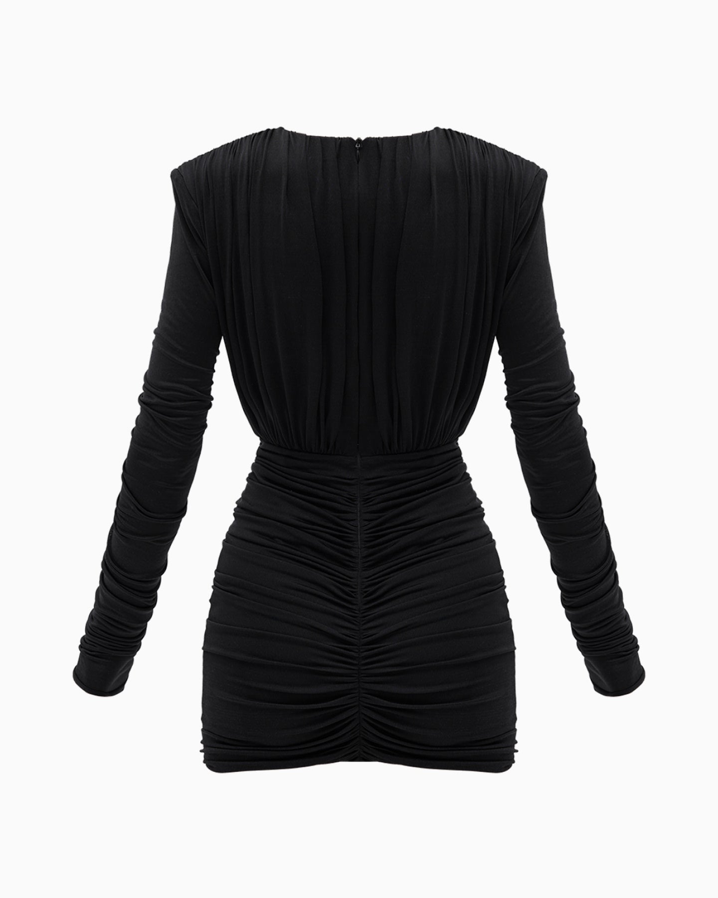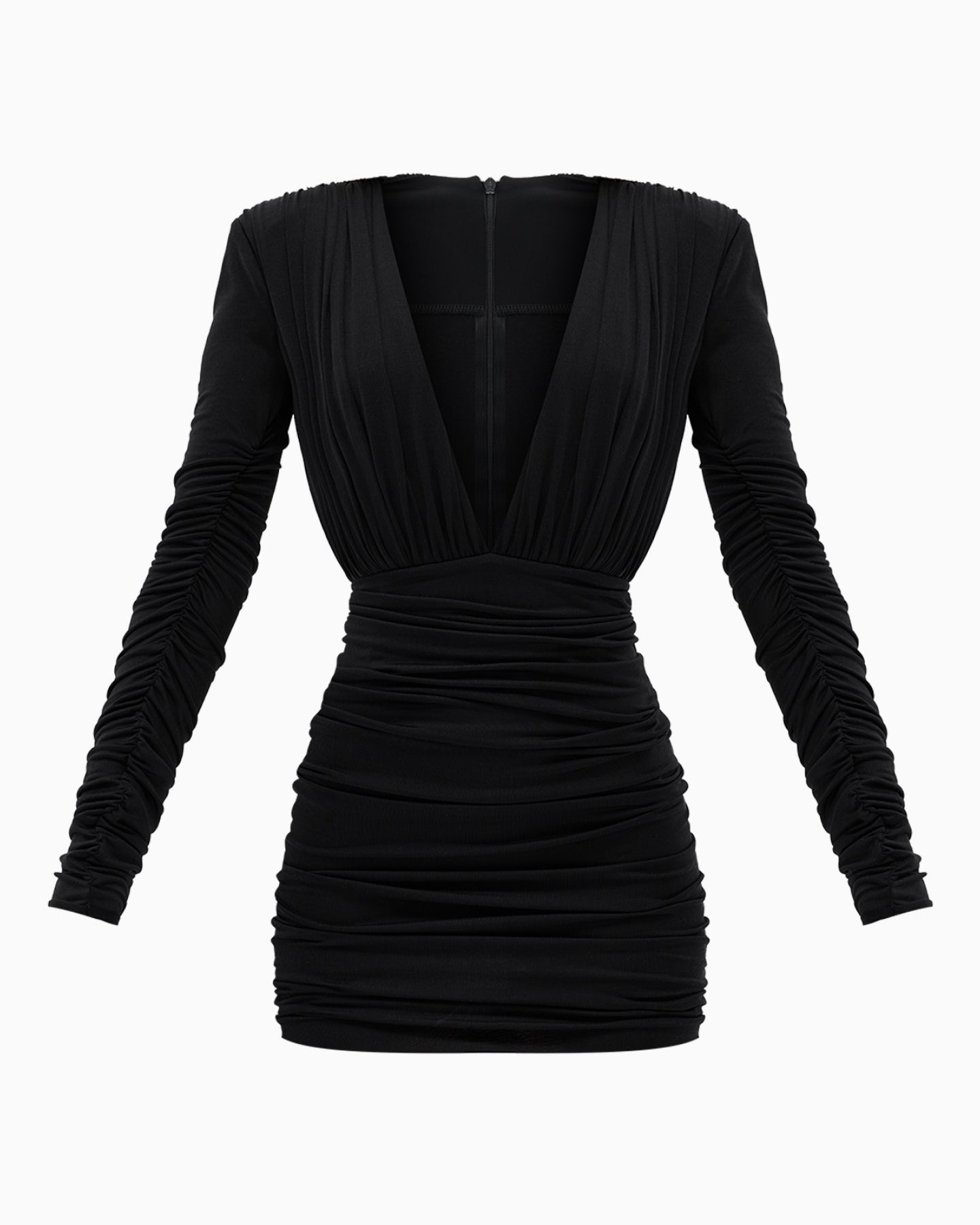 A deep V-neckline and long sleeves made from ultra-fine, semi-sheer silk add lightness, grace, and a delicate sense of allure.