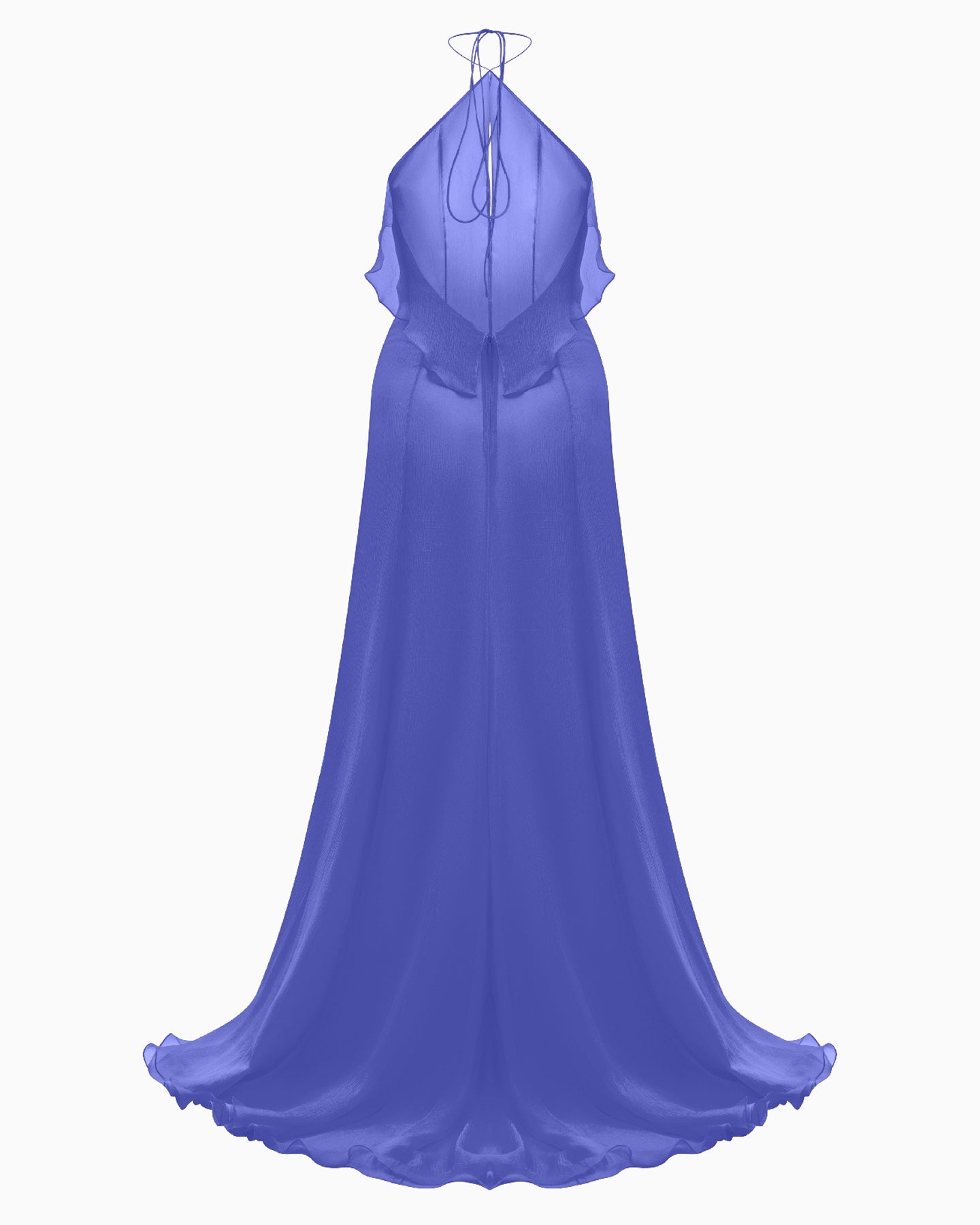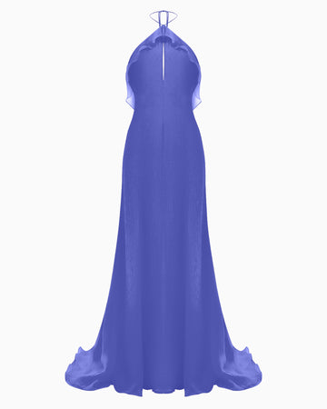A mesmerizing silk gown in an enchanting cornflower blue, radiating sophistication and allure.