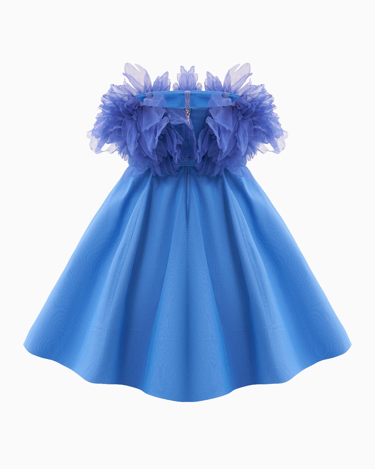 The true highlight of this dress lies in its exquisite handcrafted flowers, made from natural silk, adding a touch of ethereal charm.