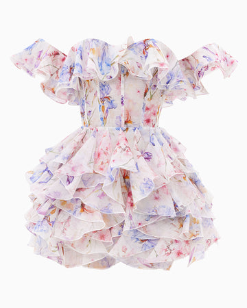 VIOLA embodies sophisticated sensuality and Italian charm. The deep neckline at the front and back boldly highlights femininity, while the dropped shoulders and ruffles add lightness and romance. The corset elegantly accentuates the waist, and the voluminous ruffles on the skirt add dynamic movement to the dress. VIOLA is the outfit that makes every moment special